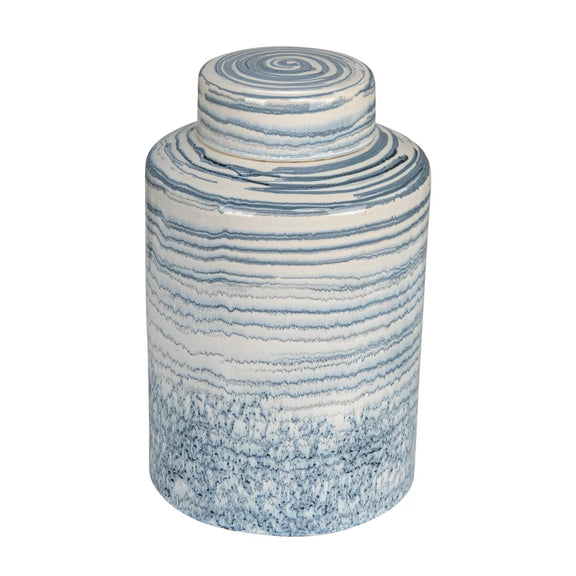 8-1/2" Round x 13"H Decorative Stoneware Striped Ginger Jar, Reactive Glaze, Blue & White (Each One Will Vary)