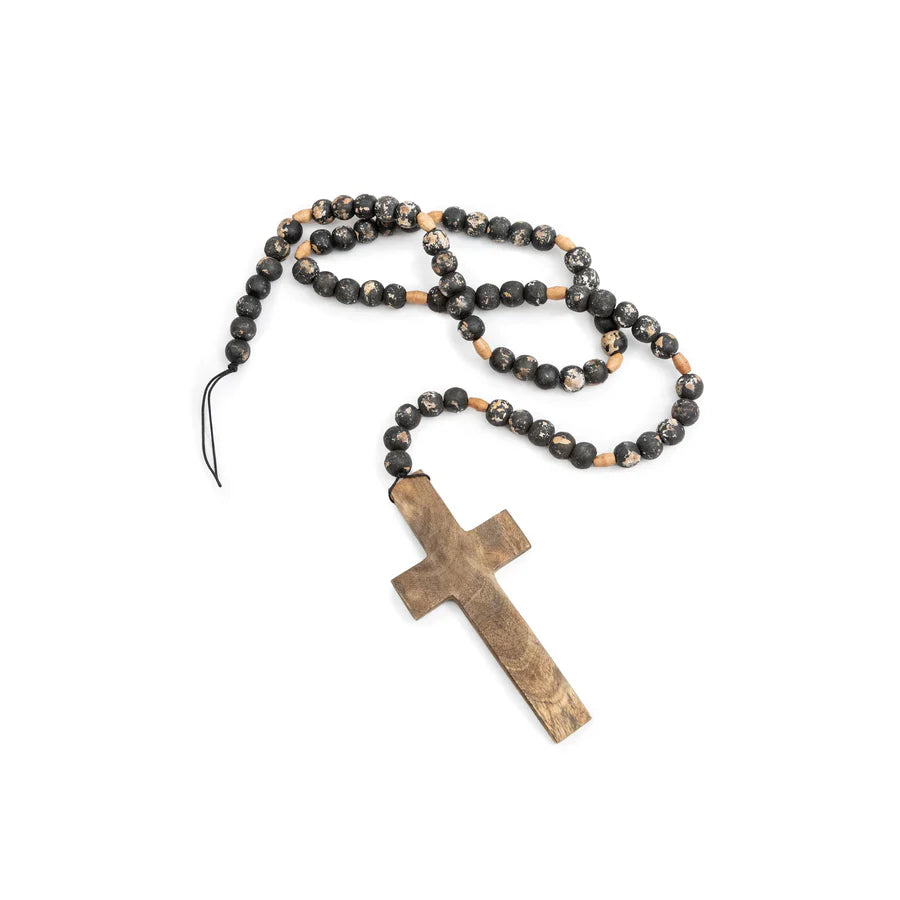 Made from natural wood, each oversized strand features a cross charm and beautifully crafted antique black wooden beads. Perfect for draping over mantels, styling on coffee tables, or adorning your favorite prayer space. A meaningful accent that serves as a gentle reminder of love, grace, and faith.