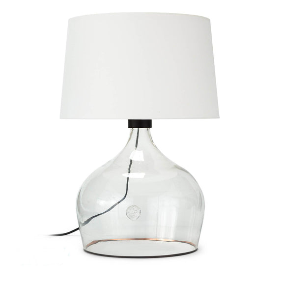 Add refreshing character to your living room, dining room or bedroom with this beautifully constructed glass vessel lamp. Thoughtful detailing such as its black cloth cord, copper stripe inside the base and glass medallion make this lamp the perfect balance of casual and sophisticated.