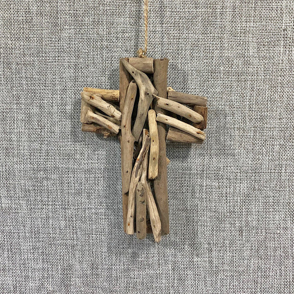4 in Driftwood Cross Ornament Each 6" Tall 4" Wide Twine Hanger