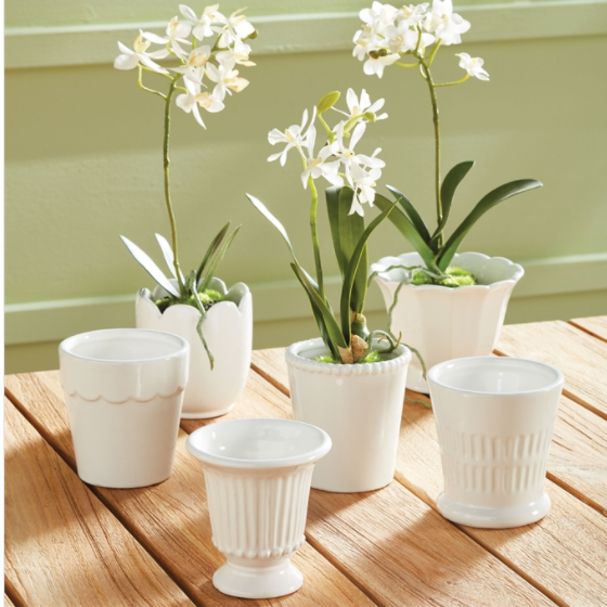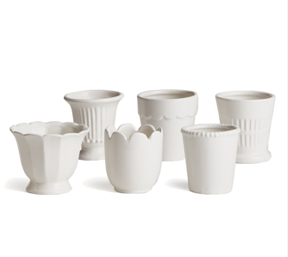 This sweet assortment of little white cachepots are designed in traditional forms. A darling gift for any lover of the classics.