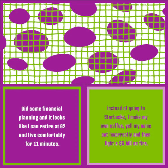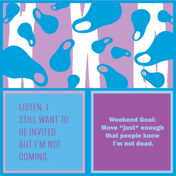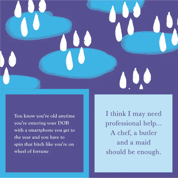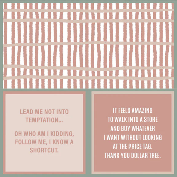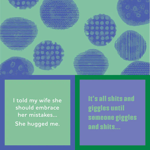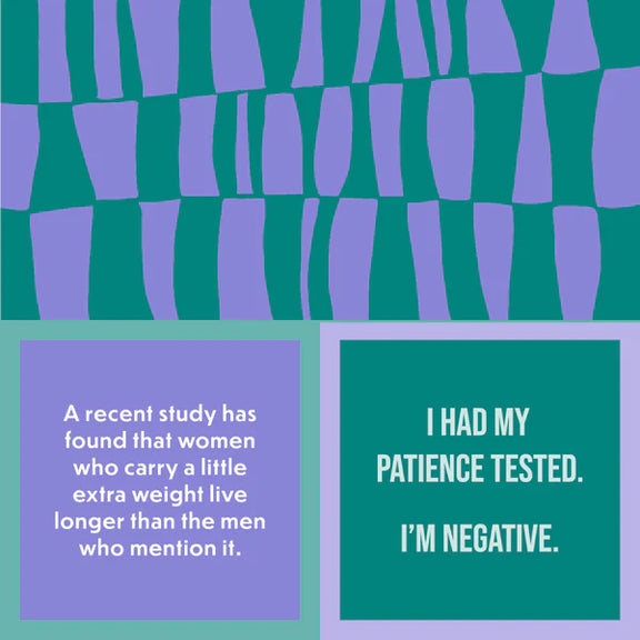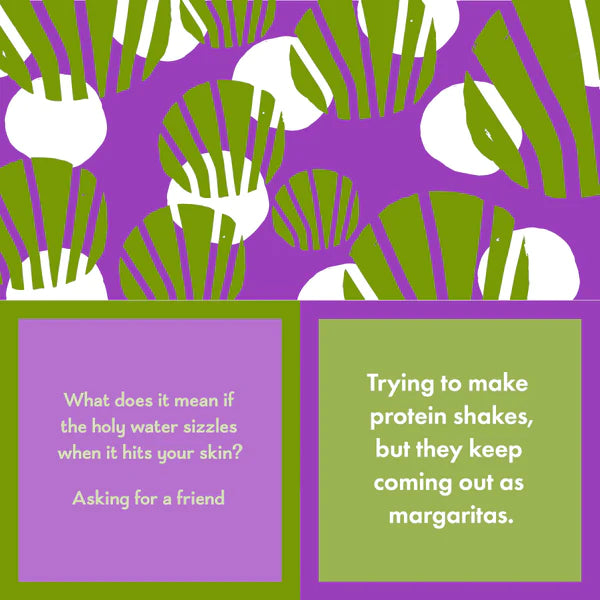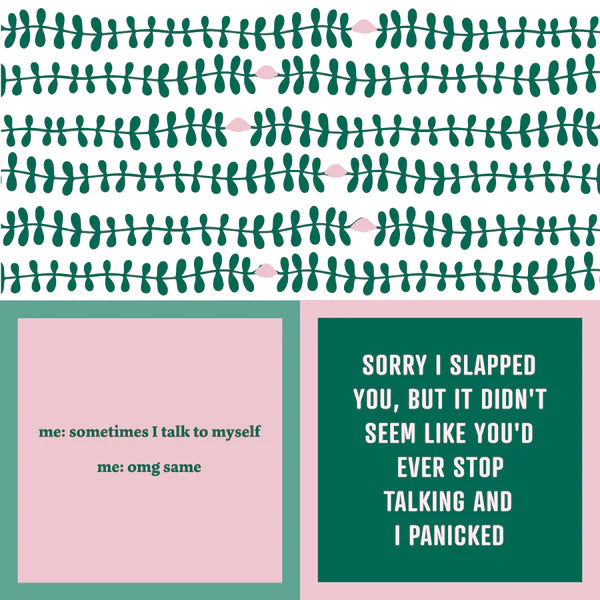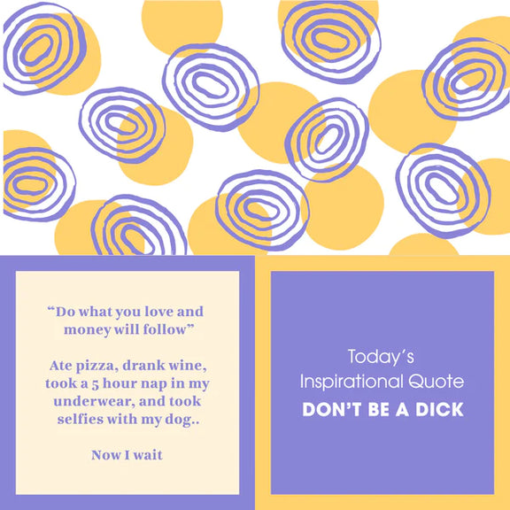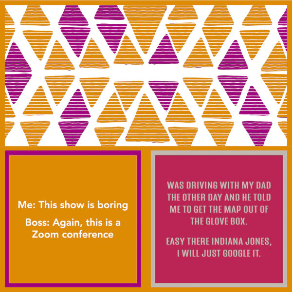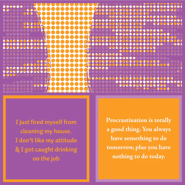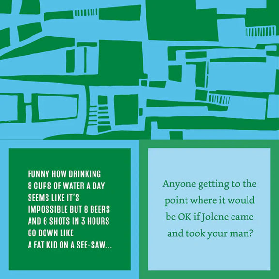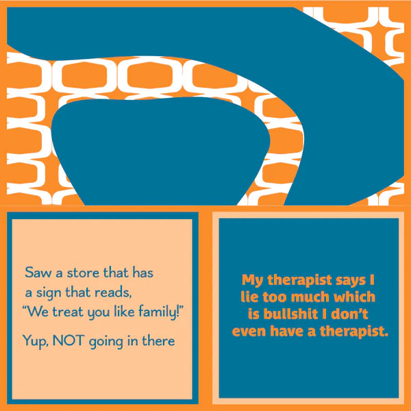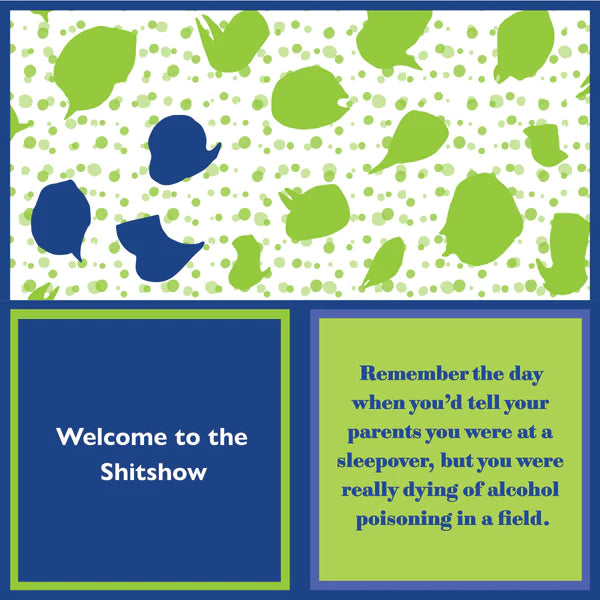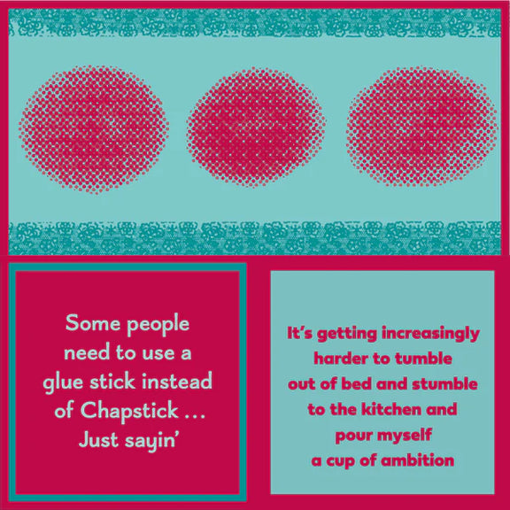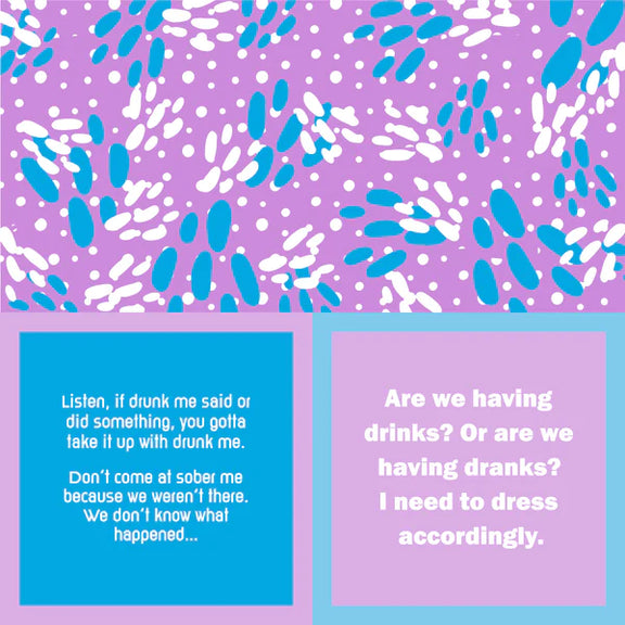 Hilarious, a wee bit snarky, cocktail napkins and greeting cards.The Original Double Sided cocktail napkin has laugh out load, hilarious statements on both sides of the napkin with a fun contemporary design on the inside. Package includes (20) 3 ply cocktail napkins 5"x5"