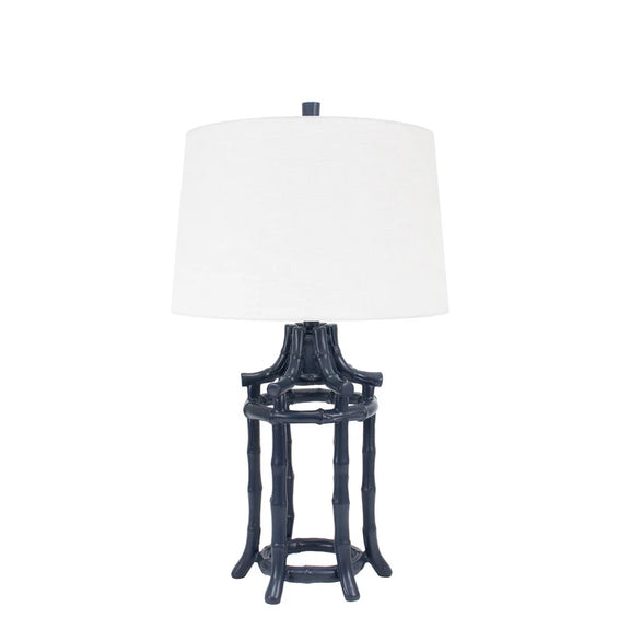 Navy Bamboo Table Lamp-with Casual Linen Shade