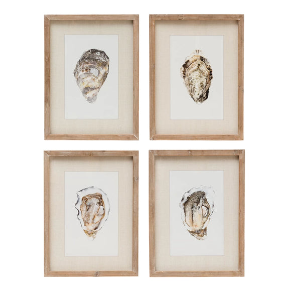 11-3/4"W x 15-3/4"H Wood Framed Glass Wall Décor w/ Oyster, 4 Styles