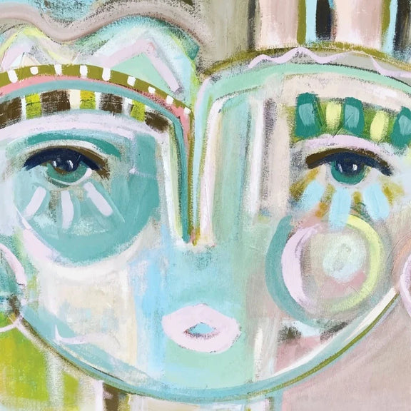 Introducing Penny for Your Thoughts Chica, a captivating work by Windy O'Connor that exudes quiet curiosity and charm. This piece features soft pastel hues of mint and blush, layered with thoughtful details and expressive eyes that hint at untold stories. With its gentle yet striking presence, this chica is perfect for creating a calming and inspiring focal point in any room. A timeless addition to your art collection that invites you to pause and reflect.