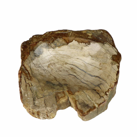 In the forests of Indonesia, majestic trees have been preserved beneath layers of volcanic sediment over hundreds of years. The organic process of permineralization transforms them from wood to rock, leaving behind fossils ringed in gorgeous earthen hues. The sheer weight and density of the stone can be a bit surprising. We also enlist artisans to hand-process the most mesmerizing fossils into modern, functional bowls and dishes. Size, shape & condition vary.