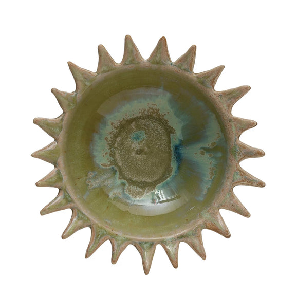This stoneware sunburst serving bowl is a unique and beautiful piece. It’s opal reactive glaze makes it perfect for a beach inspired home and its unique shape adds a sense of style to any home. This serving bowl will make a statement as a centerpiece and will add to the overall feel of any room.