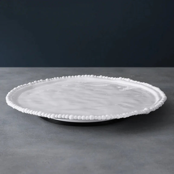 Get organized with the 14" VIDA Alegria lazy susan in white; a fabulously functional new item from Beatriz Ball's Alegria Collection of luxury melamine. With a spirited pearl rim and a brilliant organic surface, the lazy susan coordinates with other new kitchen items, as well as with our fabulous new dining pieces. Ideal on the dining table or kitchen counter. Take it for a spin! (Cross-Merchandising Alert: Display with your favorite artisanal mustards, infused oils and pepper sauces. ) The versatile item has the luster, heft and look of a ceramic piece. Made of luxury melamine for everyday enjoyment, this piece is ideally suited for indoor and outdoor use. Dishwasher safe (top rack), heavy-weight, break resistant and durable, food safe, BPA and PABA free. 14 x 0 x 14