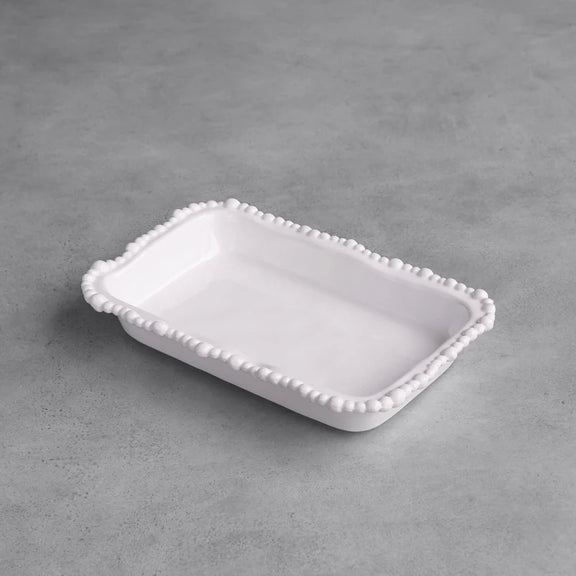 A lively and classy look for presenting guest towels.The VIDA Alegria Guest Towel Holder (White) is an essential serving piece from Beatriz Ball's VIDA Collection of luxury melamine. With a pearl inspired rim and a brilliant white surface, the design looks great anywhere. Perfect for a variety of serving needs, the item has the luster, heft and look of a ceramic piece. Holds standard guest towels. Made of luxury melamine for everyday enjoyment, this piece is ideally suited for indoor and outdoor use. Dishwasher safe (top rack), heavy weight, food safe, BPA and PABA free.