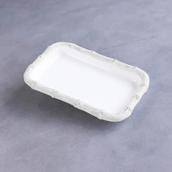 Here's just the thing for a flattering and classy holder for guest towels. The VIDA Bamboo Guest Towel Holder (White) is an essential serving piece from Beatriz Ball's VIDA Collection of luxury melamine. With a bamboo inspired rim and an overall brilliant white surface, the small rectangular tray looks great anywhere. Perfect for a variety of serving needs, the design has the luster, heft and look of a ceramic piece. Holds standard guest towels. Made of luxury melamine for everyday enjoyment, this piece is ideally suited for indoor and outdoor use. Dishwasher safe (top rack), heavy weight, food safe, BPA and PABA free.